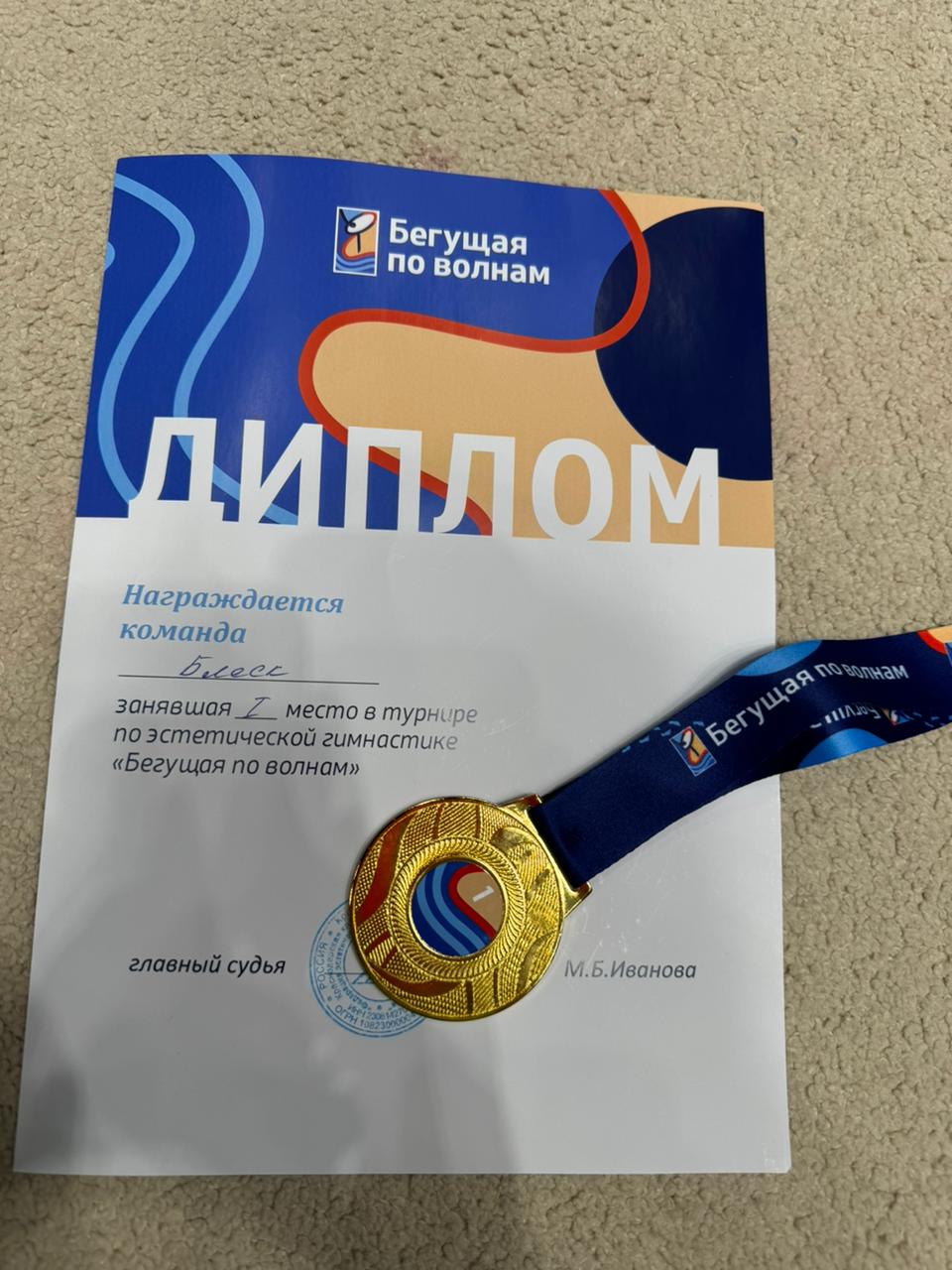 – выиграла золото в турнире по эстетической гимнастике Всероссийских соревнований «Бегущая по волнам»!