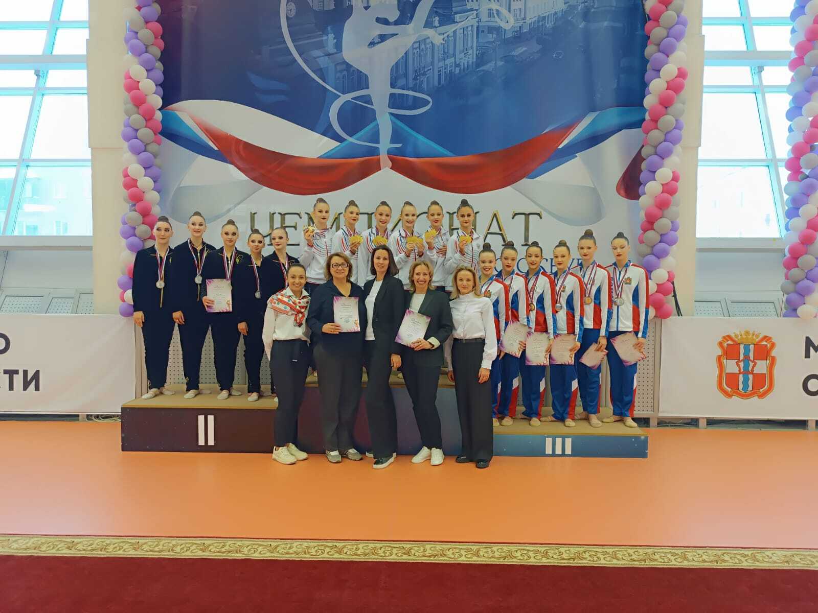 По итогам выступления в групповом многоборье команда «Лидер» выиграла бронзовые награды Чемпионата СФО по художественной гимнастике!